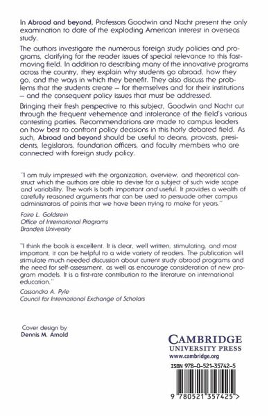 In this book, Professors Goodwin and Nacht present the only examination to date on the burgeoning American interest in overseas study. Attempting to lead the reader into and through this broad field, the authors investigate the numerous foreign study policies and programs. In addition to describing many of the innovative programs across the country, they explain why students go abroad, how they go, and the ways in which they benefit from this experience.