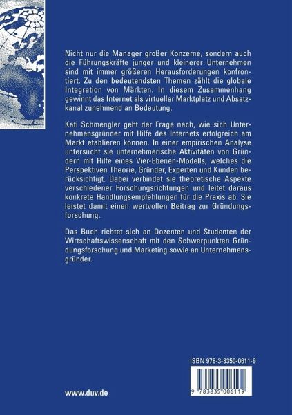Geleitwort Nicht nur Manager großer Konzerne, sondern auch Lenker junger und kleinerer Unternehmen sehen sich in der heutigen Zeit in vielerlei Hinsicht vor immer größere Herausforderungen gestellt. Zu den wichtigsten Trends zählt hierbei die globale Integration von Märkten. Sie erhöht die Angreifbarkeit von Wettbewerbspositionen und erfordert es in nicht wenigen Branchen, von der Gründung an international zu denken und zu agieren. Dies betrifft insbesondere auch die räumliche Expansion der Kundenakquise und -pflege via Marketing. Hierbei liegt auf der Hand, dass mit dem Erfordernis, immer größere Marktgebiete abzudecken, die Bedeutung des Internets als virtueller Marktplatz, Absatzkanal sowie I&K- Forum immens steigt. Mit diesen Gedanken ist zugleich der Kontext der vorliegenden Schrift beschrieben. Konkret geht Frau Schmengler die Frage an, wie es Gründungsunternehmen gelingt, sich im heutigen Marktumfeld erfolgreich zu entwickeln und zu etablieren, wobei der Analyseschwerpunktbei der Betrachtung des Internets als Erfolgsfaktor liegt. Ausgelotet werden Implikationen der kognitionswissenschaftlich gebetteten Strategie "Mind Share Leads to Market Share" auf die Erfolgsaussichten der Nutzung des Internets im Marketing-Zusammenhang junger Unt- nehmen. Die Annahme, dass eine Konzentration auf die Schaffung "gemeinsamer relevanter Wirklichkeiten" im Sinne Berger/Luckmanns ein Marktanteilswachstum befördere, wird unter Aufarbeitung psychologischer, philosophischer und soziologischer "Mainstream-Literatur" sowie unter Einbeziehung der Erkenntnisse insbesondere der Internet-Ökonomie und Entrepreneurship-Forschung analysiert.