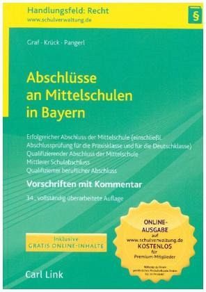 Die Broschüre enthält alle Regelungen des BayEUG, der MSO und weiterer Vorschriften zu den verschiedenen Mittelschulabschlüssen in Bayern. Die Gesetzesgrundlagen für den erfolgreichen Mittelschulabschluss (inkl. der Abschlussprüfung für die Praxisklasse und für die Deutschklasse), den qualifizierenden Abschluss der Mittelschule, den Mittleren Schulabschluss und den qualifizierten beruflichen Bildungsabschluss in Bayern sind vollständig und auf dem Stand der aktuellsten Rechtsprechung zusammengeführt.