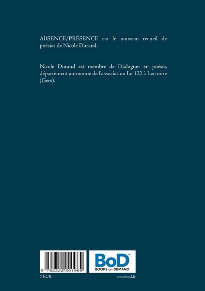 Nicole Durand est membre de Dialoguer en poésie, département autonome de l'association Le 122 à Lectoure (Gers).