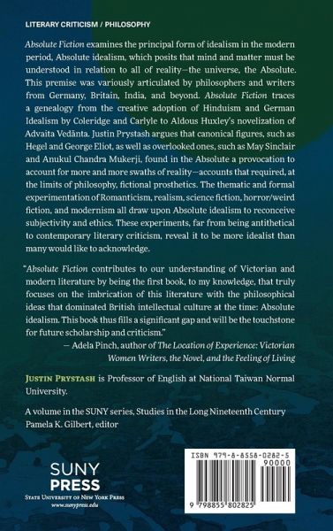 Explores the coevolution of Absolute idealist philosophy and British fiction from the Romantic period forward. Absolute Fiction examines the principal form of idealism in the modern period, Absolute idealism, which posits that mind and matter must be understood in relation to all of reality-the universe, the Absolute. This premise was variously articulated by philosophers and writers from Germany, Britain, India, and beyond. Absolute Fiction traces a genealogy from the creative adoption of Hinduism and German Idealism by Coleridge and Carlyle to Aldous Huxley's novelization of Advaita Ved¿nta. Justin Prystash argues that canonical figures, such as Hegel and George Eliot, as well as overlooked ones, such as May Sinclair and Anukul Chandra Mukerji, found in the Absolute a provocation to account for more and more swaths of reality-accounts that required, at the limits of philosophy, fictional prosthetics. The thematic and formal experimentation of Romanticism, realism, science fiction, horror/weird fiction, and modernism all draw upon Absolute idealism to reconceive subjectivity and ethics. These experiments, far from being antithetical to contemporary literary criticism, reveal it to be more idealist than many would like to acknowledge.