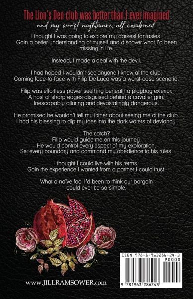 The Lion's Den club was better than I ever imagined and my worst nightmares, all combined. I thought I was going to explore my darkest fantasies. Gain a better understanding of myself and discover what I'd been missing in life. Instead, I made a deal with the devil. I had hoped I wouldn't see anyone I knew at the club. Coming face-to-face with Filip De Luca was a worst-case scenario. Filip was effortless power seething beneath a playboy exterior. A host of sharp edges disguised behind a cavalier grin. Inescapably alluring and devastatingly dangerous. He promised he wouldn't tell my father…mehr