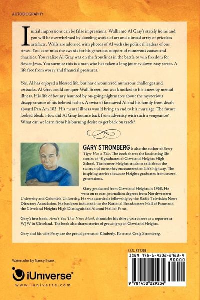 Initial impressions can be false impressions. Walk into Al Gray's stately home and you will be overwhelmed by dazzling works of art and a broad array of priceless artifacts. Walls are adorned with photos of Al with the political leaders of our times. You can't miss the awards for his generous support of numerous causes and charities. You realize Al Gray was on the frontlines in the battle to win freedom for Soviet Jews. You surmise this is a man who has taken a long journey down easy street. A life free from worry and financial pressures. Yes, Al has enjoyed a blessed life, but has encountered numerous challenges and setbacks. Al Gray could conquer Wall Street, but was knocked to his knees by mental illness. His life of bounty haunted by on-going nightmares about the mysterious disappearance of his beloved father. A twist of fate saved Al and his family from death aboard Pan Am 103. His mental illness would bring an end to his marriage. The future looked bleak. How did Al Gray bounce back from adversity with such a vengeance? What can we learn from his burning desire to get back on track?