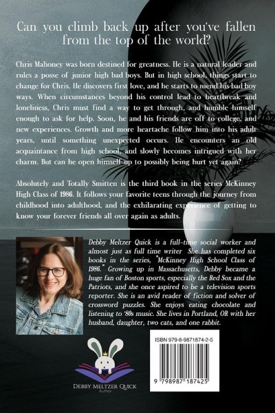 Can you climb back up after you've fallen from the top of the world? Chris Mahoney was born destined for greatness. He is a natural leader and rules a posse of junior high bad boys. But in high school, things start to change for Chris. He discovers first love, and he starts to mend his bad boy ways. When circumstances beyond his control lead to heartbreak and loneliness, Chris must find a way to get through, and humble himself enough to ask for help. Soon, he and his friends are off to college, and new experiences. Growth and more heartache follow him into his adult years, until something unexpected occurs. He encounters an old acquaintance from high school, and slowly becomes intrigued with her charm. But can he open himself up to possibly being hurt yet again? Absolutely and Totally Smitten is the third book in the series McKinney High Class of 1986. It follows your favorite teens through the journey from childhood into adulthood, and the exhilarating experience of getting to know your forever friends all over again as adults.
