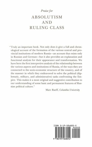This book is the first comprehensive examination of the Russian ruling élite and its political institutions during an important period of state building, from the emergence of Russia on the stage of world politics around 1700 to the consolidation of its position after the victory over Napoleon. Western scholarship has focused on the great rulers of the period, Peter, Catherine, and Alexander, neglecting the lesser nobility on whose support these rulers relied. LeDonne not only gives a full chronological account of the development of bureaucratic, military, economic, and political institutions in Russia during this period, but also skilfully analyses the ways in which local agencies and the ruling classes exercised control and shared power with the absolute monarchs. The book will substantially revise scholars' views of the nature of political power in imperial Russia.