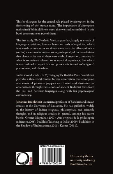 This book argues for the central role played by absorption in the functioning of the human mind. The importance of absorption makes itself felt in different ways; the two studies combined in this book concentrate on two of them. The first study, The Symbolic Mind, argues that, largely as a result of language acquisition, humans have two levels of cognition, which in normal circumstances are simultaneously active. Absorption is a (or the) means to circumvent some, perhaps all, of the associations that characterize one of these two levels of cognition, resulting in what is sometimes referred to as mystical experience, but which is not confined to mysticism and plays a role in various "religious" phenomena, and elsewhere. In the second study, The Psychology of the Buddha, Prof. Bronkhorst provides a theoretical context for the observation that absorption is a source of pleasure, grapples with Freud, and illustrates his observations through translations of ancient Buddhist texts from the Pali and Sanskrit languages along with his psychological commentary. Johannes Bronkhorst is emeritus professor of Sanskrit and Indian studies at the University of Lausanne. He has published widely in the history of Indian religious, philosophical and scientific thought, and in religious studies in general. Among his recent books: Greater Magadha (2007), Aux origines de la philosophie indienne (2008), Buddhist Teaching in India (2009), Buddhism in the Shadow of Brahmanism (2011), Karma (2011).