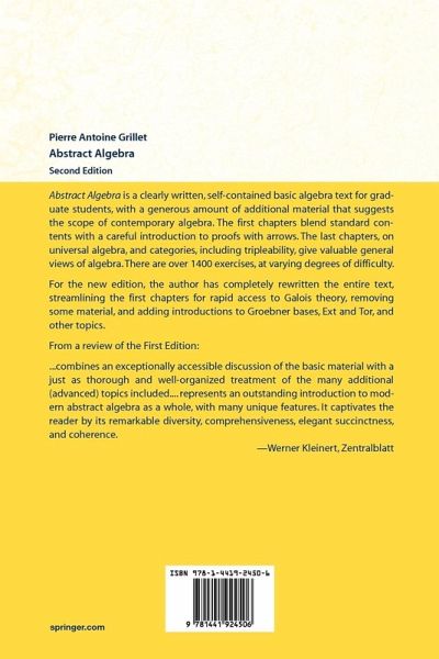 From the reviews of the second edition: "This book certainly has more than enough material for a two-semester algebra course for first-year graduate students. ... The balance among various topics will please some instructors more than others." (Miklós Bóna, MathDL, September, 2007) "The book under review is the second edition of the author's sweeping text originally titled 'Algebra' ... . All together, the second edition of P. A. Grillet's standard primer is a masterly, clearly written, comprehensive and self-contained algebra text for graduate students, with a plentiful supply of additional advanced material ... . Moreover, the book under review, in its didactically oriented disposition, represents an excellent source for teachers and instructors of graduate courses in abstract algebra as well." (Werner Kleinert, Zentralblatt MATH, Vol. 1122 (24), 2007)