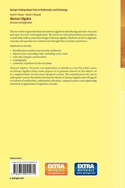 Abstract Algebra: Structure and Application is suitable as a text for a first course on abstract algebra whose main purpose is to generate interest in the subject or as a supplementary text for more advanced courses. The material paves the way to subsequent courses that further develop the theory of abstract algebra and will appeal to students of mathematics,mathematics education, computer science, and engineering interested in applications of algebraic concepts.