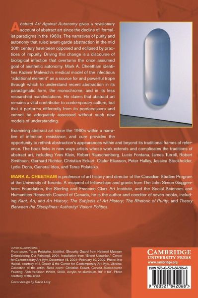Mark Cheetham provides a revolutionary account of abstraction in the visual arts since the decline of the formalist paradigms in the 1960s. By examining abstract art since the 1960s within a narrative of infection, resistance, and cure, Cheetham provides an opportunity to rethink paradigmatic genres - the monochrome and the mirror - and to link in new ways the work of artists whose work extends and complicates the tradition of abstract art, including Yves Klein, Robert Rauschenberg, James Turrell, Gerhard Richter, Peter Halley, General Idea, and Taras Polataiko.