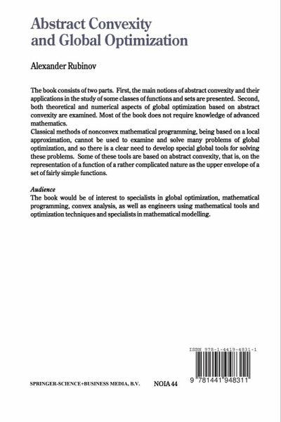 'The book will be very useful for experts in optimisation and aspects of functional and numerical analysis and related topics. This is an excellent introduction to those who are interested in the study of abstract convexity and its applications and to very interesting and highly applicable generalisations on convexity.'