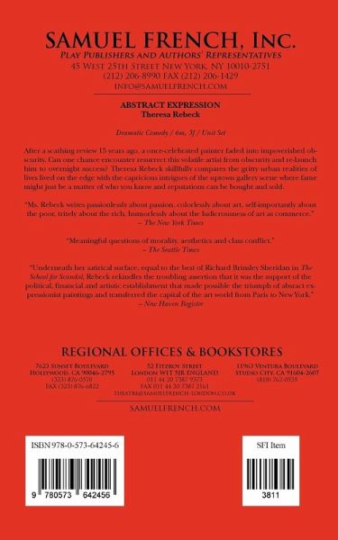 Dramatic Comedy Characters: 6 male, 3 female Unit Set After a scathing review 15 years ago, a once-celebrated painter faded into impoverished obscurity. Can one chance encounter resurrect this volatile artist from obscurity and re-launch him to overnight success? Theresa Rebeck skillfully compares the gritty urban realities of lives lived on the edge with the capricious intrigues of the uptown gallery scene where fame might just be a matter of who you know and re