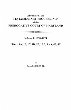 This volume consists of abstracts of Prerogative Court of Maryland records for the period 1658 to 1674. Mr. Skinner has combed through administration bond, will, inventory, administration account, and final balance entries to produce this collection. The abstracts are arranged in chronological order by court session, and in every instance they give the names of the principals (testators, heirs, witnesses, administrators, and so forth). In many cases we also learn the details of bequests, names of slaves, appraisers, and more. In all, Mr. Skinner identifies some 6,000 17th-century Marylanders whose existence and activities would otherwise remain hidden in some rich but very obscure records.