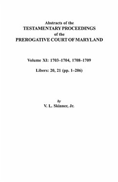 Volume XI of this series contains abstracts of the records for 1703-1704 and 1707-1709, as found in Libers 20 and 21 of the records of the Prerogative Court of Maryland. As such, it overlaps chronologically with Volume X, which deals with the years 1704-1707. The abstracts are arranged chronologically by court session. For the most part, the transcriptions state the names of the principals (testators, heirs, witnesses, administrators, and so forth) as well as details of bequests, names of slaves, appraisers, and more. In all, this volume refers to roughly 8,000 residents.