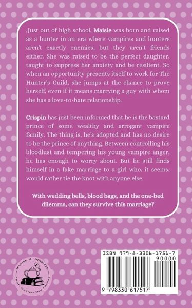 Just out of high school, Maisie was born and raised as a hunter in an era where vampires and hunters aren't exactly enemies, but they aren't friends either. She was raised to be the perfect daughter, taught to suppress her anxiety and be resilient. So when an opportunity presents itself to work for The Hunter's Guild, she jumps at the chance to prove herself, even if it means marrying a guy with whom she has a love-to-hate relationship. Crispin has just been informed that he is the bastard prince of some wealthy and arrogant vampire family. The thing is, he's adopted and has no desire to be the prince of anything. Between controlling his bloodlust and tempering his young vampire anger, he has enough to worry about. But he still finds himself in a fake marriage to a girl who, it seems, would rather tie the knot with anyone else. With wedding bells, blood bags, and the one-bed dilemma, can they survive this marriage?