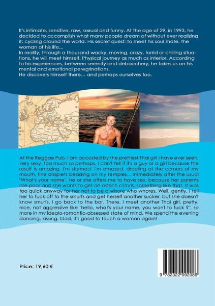 It's intimate, raw, sensitive, sexual, funny. Share the adventures of a young man who dared to do what the majority will never dare, and live his daily life for more than a year from Europe to Asia, in 1990.For all those who dream of vacations in large hotels, organized group trips, lazing around on deckchairs-pool or who like crowded cruises, this book is not for you. But if you like seeing the country differently, confronting yourself with wacky, funny, crazy, sometimes torrid or downright chilling situations, then you're going to enjoy this dry and snappy style, without frills, and always with humor and sensitivity.Pages full of questioning and exposure of the author. He is like you. Aren't we all the same? You enter his heart, which is not so different from yours, with perhaps a little more courage, and a need for new spiritual answers. He gives us his intimate version of his experiences to better understand our lives. It's day by day. The adventure takes us, we are there, wetravel and it goes fast!Between meditative serenity and debauchery, stupor and lust in Asia. From noisy capitals to the depths of the Thai jungle, in a Buddhist monastery surrounded by cobras where his life will take on a new spiritual impetus, he takes us on a thrilling and warm inner adventure.Extract :At the Reggae Pub, I am accosted by the prettiest Thai girl I have ever seen, very sexy, too much so perhaps. I can't tell if it's a guy or a girl because the result is amazing, I'm stunned. I'm amazed, drooling at the corners of my mouth, fine droplets beading on my temples... Immediately after the usual "What's your name", he or she offers me to have sex, because her parents are poor and she wants to get an ostrich clitoris, something like that. It was too quick anyway for her not to be a whore who whores. Well, gently, I tell her to fuck off to the smurfs and get herself another sucker, but she doesn't know smurfs. I go back to the bar. There, I meet another Thai girl, pretty,nice, not aggressive like "hello, what's your name, you want to fuck ?", so more in my idealo-romantic-obsessed state of mind. We spend the evening dancing, kissing. God, it's good to touch a woman again!