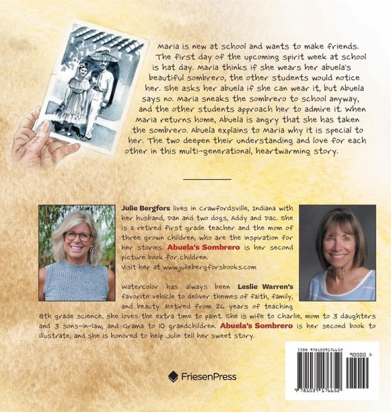 Maria is new at school and wants to make friends. The first day of the upcoming spirit week at school is hat day. Maria thinks if she wears her abuela's beautiful sombrero, the other students would notice her. She asks her abuela if she can wear it, but Abuela says no. Maria sneaks the sombrero to school anyway, and the other students approach her to admire it. When Maria returns home, Abuela is angry that she has taken the sombrero. Abuela explains to Maria why it is special to her. The two deepen their understanding and love for each other in this multi-generational, heartwarming story.