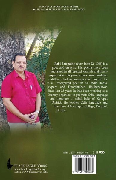 Rabi Satapathy's first collection "Abujha Pakshira Geeta" is the winner of the Black Eagle Books' "First Book Award" for 2020. The collection has 58 poems, each poem demands to be read aloud-lines of perfect.