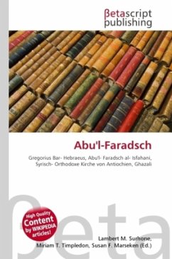 High Quality Content by WIKIPEDIA articles! High Quality Content by WIKIPEDIA articles! Gregorius Bar-Hebraeus Abu al-Faraj (auch Bar Hebräus, Bar Ebroyo oder Abulfaragus, arabisch ???? ??????? Ibn al-Ibri, 1225 oder 1226 in Malatya; ? 30. Juli 1286 in Maragha bei Täbriz in Persien, im Hoflager des Ilchans) war ein Universalgelehrter und Maphrian des Ostens der Syrisch-Orthodoxen Kirche im 13. Jahrhundert. Abu l-Faradsch ?Al? ibn al-Husain al-Qurasch? al-Isfah?n? (arabisch ???? ????? ??? ?? ?????? ?????? ??????????, DMG Ab? l-Fara? ?Al? b. al-?usain al-Qura?? al-I?fah?n?; 897 in Isfahan; ? 20. November 967 in Bagdad) war ein arabischer Historiker, Literat und Poet. Trotz seiner persischen Nisba (?der Isfahaner?) war Abu l-Faradsch arabischer Herkunft und ein Nachkomme der Koreischiten. Er gehörte der schiitischen Glaubensrichtung an. Abu l-Faradsch studierte und lebte in Bagdad, verbrachte allerdings auch einige Zeit am Hof in Aleppo.