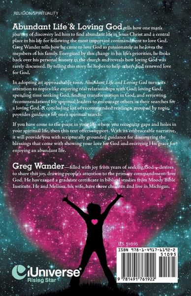 Abundant Life & Loving God tells how one man’s journey of discovery led him to find abundant life in Jesus Christ and a central place in his life for following the most important commandment to love God. Greg Wander tells how he came to love God as passionately as he loves the members of his family. Energized by this change in his life’s priorities, he looks back over his personal history in the church and reveals how loving God was rarely discussed. By telling this story he hopes to help others find renewed love for God. In adopting an approachable tone, Abundant Life and Loving God turns its attention to topics like enjoying real relationships with God, loving God, spending time seeking God, finding transformation in God, and reviewing recommendations for spiritual leaders to encourage others in their searches for a loving God. A concluding list of recommended readings, grouped by topic, provides guidance for one’s spiritual search. If you have come to the point in your life where you recognize gaps and holes in your spiritual life, then this text offers support. With its embraceable narrative, it will provide you with scripturally grounded guidance for discovering the blessings that come with showing your love for God and receiving His grace for enjoying an abundant life.