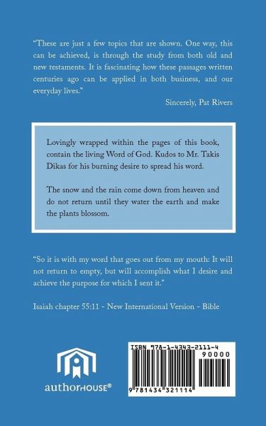 Lovingly wrapped within the pages of this book, contain the living Word of God. Kudos to Mr. Takis Dikas for his burning desire to spread his word. The snow and the rain come down from heaven and do not return until they water the earth and make the plants blossom. "So it is with my word that goes out from my mouth: It will not return to empty, but will accomplish what I desire and achieve the purpose for which I sent it." Isaiah chapter 55:11 - New International Version - Bible