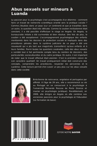 La passion pour la psychologie s'est accompagnée d'un dilemme : comment faire un travail de recherche scientifique orienté vers la pratique sociale ? Comme j'étudiais dans un pays (sur un continent) et que je travaillais dans un autre, la question était très délicate. Comme le soutien institutionnel était constant, il a été possible d'effectuer le stage en Angola. En Angola, la bureaucratie initiale a été surmontée et bien résolue. Une fois de plus, le soutien a été exceptionnel. L'accompagnement psychologique des enfants mentionnés dans les dossiers de protection sociale et impliqués dans des procédures pénales dans le système judiciaire de ce pays a été une nouveauté qui a plu tant aux magistrats (conseillers) qu'aux enfants et à leurs familles. Parmi toutes les questions soulevées, celle des abus sexuels a semblé tout à fait pertinente compte tenu du nombre de dossiers, des particularités socioculturelles et du cadre juridique. En outre, il est important de noter que le travail effectué était pionnier. C'est la première raison de son caractère qualitatif. Un travail pratiquement initial doit construire des concepts, comprendre les procédures, respecter les personnes et le système. Cette lecture permet d'en savoir un peu plus sur les abus sexuels dans cette société.