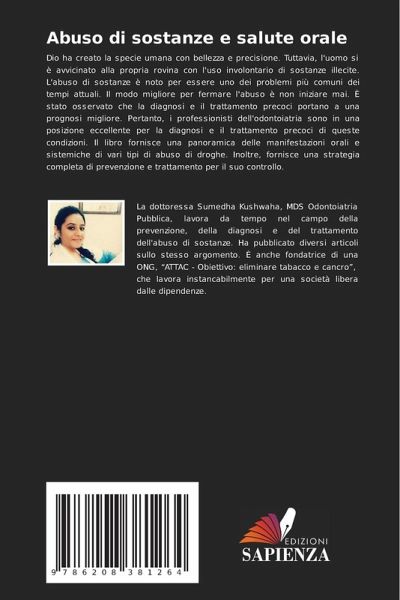 Dio ha creato la specie umana con bellezza e precisione. Tuttavia, l'uomo si è avvicinato alla propria rovina con l'uso involontario di sostanze illecite. L'abuso di sostanze è noto per essere uno dei problemi più comuni dei tempi attuali. Il modo migliore per fermare l'abuso è non iniziare mai. È stato osservato che la diagnosi e il trattamento precoci portano a una prognosi migliore. Pertanto, i professionisti dell'odontoiatria sono in una posizione eccellente per la diagnosi e il trattamento precoci di queste condizioni. Il libro fornisce una panoramica delle manifestazioni orali e sistemiche di vari tipi di abuso di droghe. Inoltre, fornisce una strategia completa di prevenzione e trattamento per il suo controllo.