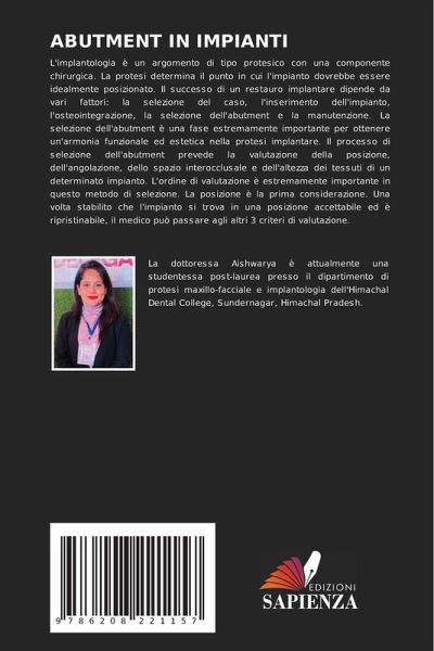 L'implantologia è un argomento di tipo protesico con una componente chirurgica. La protesi determina il punto in cui l'impianto dovrebbe essere idealmente posizionato. Il successo di un restauro implantare dipende da vari fattori: la selezione del caso, l'inserimento dell'impianto, l'osteointegrazione, la selezione dell'abutment e la manutenzione. La selezione dell'abutment è una fase estremamente importante per ottenere un'armonia funzionale ed estetica nella protesi implantare. Il processo di selezione dell'abutment prevede la valutazione della posizione, dell'angolazione, dello spazio interocclusale e dell'altezza dei tessuti di un determinato impianto. L'ordine di valutazione è estremamente importante in questo metodo di selezione. La posizione è la prima considerazione. Una volta stabilito che l'impianto si trova in una posizione accettabile ed è ripristinabile, il medico può passare agli altri 3 criteri di valutazione.