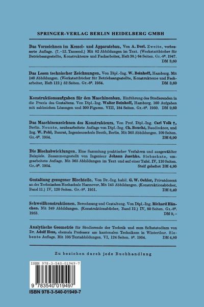 Die Ausmaße der übergroßen Behälter, Leitungs- und sonstiger Schalenteile, wie sie z.B. bei Kraftwerken und Großmaschinen vor kommen, geben heute der zeichnerischen Darstellung abwickelbarer Flächen ein größeres Gewicht als früher. Außerdem sind die Aufgaben stellungen teilweise anspruchsvoller geworden: Tragflächen, Leitwerk und Rumpfschüsse eines Flugzeugs unterscheiden sich in ihrer Krüm mungseigenart - auch soweit sie abwickelbar sind - wesentlich von zylindrischen und kegeligen Flächen. Diese Forderungen und Erkennt nisse haben im Verlauf der letzten 20 Jahre verschiedentlich zu Ver besserungen und Bereicherungen bisheriger Zeichenverfahren geführt, so daß es sich lohnt, ihnen nachzugehen. Die sich darausergebenden Vor teile kommen insbesondere der Blechbearbeitung zugute, bei allgemeinen Biegeflächen auch dem Lehren-und Attrappenbau. Die vorliegende kurze Abhandlung wendet sich an jeden, der mit \iYinkel und Zirkel umgeht: an den zünftigen Konstrukteur wie an den dafür aufgeschlossenen Handwerker, vor allem an den Spengler und :Modellschreiner. Im besonderen wird aber der Studierende wie auch der Fachlehrer an technischen Schulen der verschiedenen Gattungen Nutzen aus diesen Beispielen und Überlegungen ziehen. Die Voraussetzungen dieses weiten und unterschiedlichen Leserkreises für die Aufnahme dieses kleinen Buches sind uneinheitlich. Entsprechend schwierig war daher bei der Abfassung des Stoffes eine einigermaßen gleichmäßig verständliche bzw. fesselnde Darstellung. Der erste Teil - Zylinder-und Kegelflächen-behandelt einfache und zusammengesetzte Aufgaben, wie sie alltäglich vorkommen. Hinweise auf zeitsparende oder genauigkeitsfördernde Arbeitsvorteile am Reißbrett und in der Werk statt schaffen eine feste Verbindung zwischen Geometrie und Praxis. Gerade diese Beziehung herzustellen ist ein Hauptziel dieses Buches.