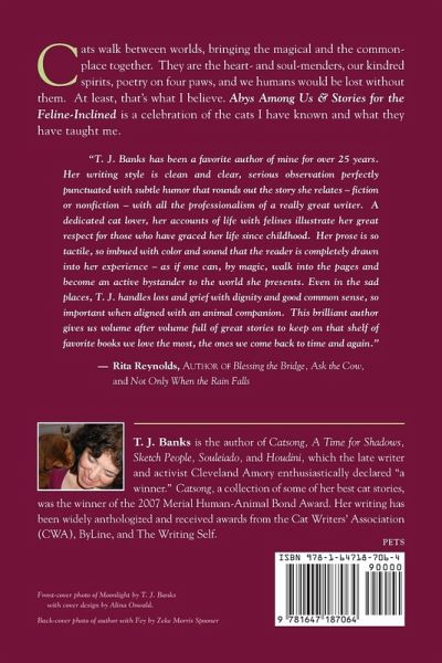 Cats walk between worlds, bringing the magical and the commonplace together. They are the heart- and soul-menders, our kindred spirits, poetry on four paws, and we humans would be lost without them. At least, that’s what I believe. Abys Among Us & Stories for the Feline-Inclined is a celebration of the cats I have known and what they have taught me.
