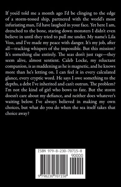 If you'd told me a month ago I'd be clinging to the edge of a storm-tossed ship, partnered with the world's most infuriating man, I'd have laughed in your face. Yet here I am, drenched to the bone, staring down monsters I didn't even believe in until they tried to pull me under. My name's Lila Voss, and I've made my peace with danger. It's my job, after all-tracking whispers of the impossible. But this mission? It's something else entirely. The seas don't just rage-they seem alive, almost sentient. Caleb Locke, my reluctant companion, is as maddening as he is magnetic, and he knows more than he's letting on. I can feel it in every calculated glance, every cryptic word. He says I owe something to the depths, a debt I've inherited and can't outrun. The problem? I'm not the kind of girl who bows to fate. But the storm doesn't care about my defiance, and neither does whatever's waiting below. I've always believed in making my own choices, but what do you do when the sea itself takes that choice away?