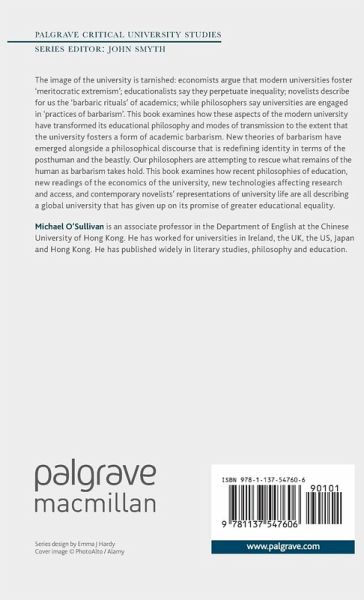 The image of the university is tarnished: economists argue that modern universities foster 'meritocratic extremism'; educationalists say they perpetuate inequality; novelists describe for us the 'barbaric rituals' of academics and philosophers say universities are engaged in 'practices of barbarism'. This book examines how these aspects of the modern university have transformed its educational philosophy and modes of transmission to the extent that the university fosters a form of academic barbarism. New theories of barbarism have emerged alongside a philosophical discourse that is redefining identity in terms of the posthuman and the beastly. Our philosophers are attempting to rescue back what remains of the human as barbarism takes hold. This book examines how recent philosophies of education, new readings of the economics of the university, new technologies affecting research and access, and contemporary novelists' representations of university life are all describing a globaluniversity that has given up on its promise of greater educational equality.