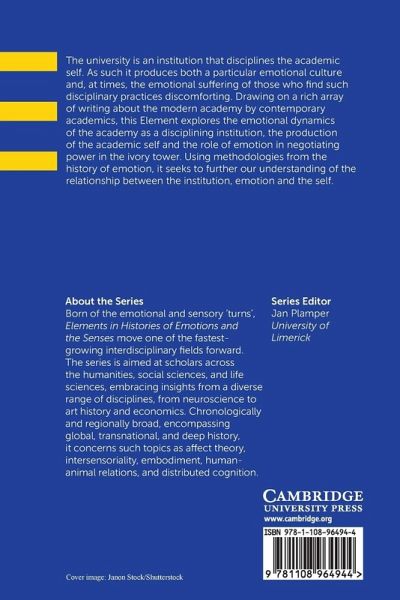 Drawing on a rich array of writing about the modern academy by contemporary academics, this Element explores the emotional dynamics of the academy as a disciplining institution, the production of the academic self, and the role of emotion in negotiating power in the ivory tower.