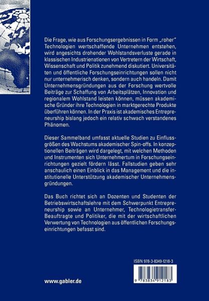 Einleitung Achim Walter und Michael Auer Unternehmerische Chancen jenseits der Trends erkennen und nutzen Notwendigkeit des Unternehmertums in der Forschung Allgemein werden in der Literatur unter dem Thema "Academic Entrepreneurship" Aktivitäten, Personen, Programme und Organisationen betrachtet, die der wirtscha- lichen Verwertung von wissenschaftlichen Erkenntnissen dienen. Im vorliegenden Buch geht es hierbei vornehmlich um die Frage, wie und unter welchen Bedingungen aus Forschungsergebnissen in Form "roher" Technologien wertschaffende Untern- men entstehen. Angesichts drohender Wohlstandsverluste wird dieses Thema von Vertretern der Wirtschaft, Wissenschaft und Politik gerade in klassischen Industr- nationen zunehmend diskutiert. Im Zuge der Globalisierung von Wertschöpfun- ketten hat in diesen Ländern der Druck, innovationsfähige Unternehmen hervor- bringen, besonders zugenommen. Die gute Nachricht lautet: Aus Universitäten und anderen öffentlichen Forschun- einrichtungen lassen sich Unternehmen ausgründen, die in Industrienationen Wac- tum fördern und Wohlstand sichern können. Deren Bedeutung für die Entwicklung von Spitzentechnologien für Hightech-Produkte wird voraussichtlich weiter steigen. So genannte akademische Spin-offs sind wirtschaftlich selbständige Organisationen, die unter Beteiligung von Wissenschaftlern aus öffentlichen Forschungseinrichtungen mit dem Ziel der wirtschaftlichen Verwertung dort entstandener Technologien - gründet wurden. Diese Unternehmen sind für uns unter mehreren Gesichtspunkten hochinteressant.