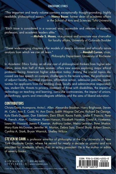 New essays from an all-star cast of thinkers address ethical issues in higher education today. Topics include free speech, tenure, adjunct faculty, historical injustices, admission policies, faculty and admin responsibilities, student life, privacy, course technology, curricula, unions, philanthropy, sports, and the aims of liberal education.