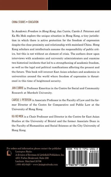Jan Currie, Carole J. Petersen, and Ka Ho Mok draw upon interviews with academics and university administrators to examine two historical incidents that led to a strengthening of academic freedom in Hong Kong, as well as to legal and political ramifications that continue to reverberate. This book will interest scholars of East Asia and academics in universities around the world where freedom of expression is threatened in this time of heightened security.