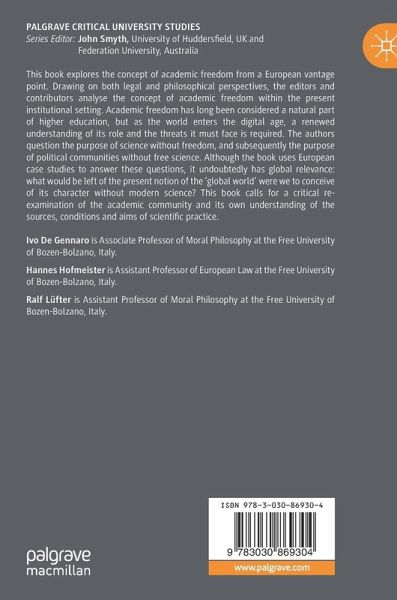 This book explores the concept of academic freedom from a European vantage point. Drawing on both philosophical and legal perspectives, the editors and contributors analyse the concept of academic freedom within the present institutional setting. Academic freedom has long been considered a natural part of higher education, but as the world enters the digital age, a renewed understanding of its role and the threats it must face is required. The authors question the purpose of science without freedom, and subsequently the purpose of political communities without free science. Although the book uses European case studies to answer these questions, it undoubtedly has global relevance: what would be left of the present notion of the 'global world' were we to conceive of its character without modern science? This book calls for a critical re-examination of the academic community and its own understanding of the sources, conditions and aims of scientific practice.