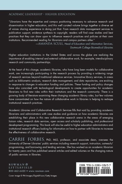 Carrie Forbes, PhD, MLS, professor and associate dean, oversees the University of Denver Libraries' public services including research support, instruction, outreach/programming, and borrowing and lending services. She has worked as an academic librarian for 20 years and has published several articles and edited volumes on the changing nature of public services in libraries. She coedited Rethinking Reference for Academic Libraries: Innovative Developments and Future Trends, published by Roman & Littlefield in 2014 and Successful Campus Outreach for Academic Libraries: Building Community Through Collaboration also published by Roman & Littlefield in 2018. Other recent publications include a coauthored chapter in Academic Librarianship Today on research and instruction service models in libraries and an edited volume, Academic Library Services for Graduate Students Supporting Future Academics and Professionals.
