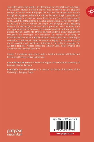 This edited book brings together an international cast of contributors to examine how academic literacy is learned and mastered in different tertiary education settings around the world. Bringing to the fore the value of qualitative enquiry through ethnographic methods, the authors illustrate in-depth descriptions of genre knowledge and academic literacy development in first and second language writing. All of the data presented in the chapters are original, as well as innovative in the field in terms of content and scope, and thought-provoking regarding theoretical, methodological and educational approaches. The contributions are also representative of both novice and advanced academic writing experiences, providing further insights into different stages of academic literacy development throughout the career-span of a researcher. Set against the backdrop of internationalisation trends in Higher Education and the pressure on multilingual academics to publish their research outcomes in English, this volume will be of use to academics and practitioners interested in the fields of Languages for Academic Purposes, Applied Linguistics, Literacy Skills, Genre Analysis and Acquisition and Language Education.
