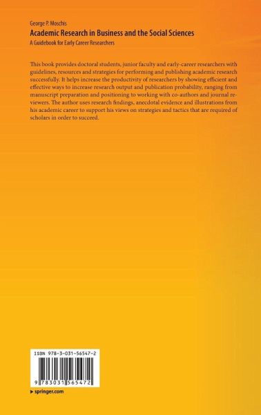 This book provides doctoral students, junior faculty and early-career researchers with guidelines, resources and strategies for performing and publishing academic research successfully. It helps increase the productivity of researchers by showing efficient and effective ways to increase research output and publication probability, ranging from manuscript preparation and positioning to working with co-authors and journal reviewers. The author uses research findings, anecdotal evidence and illustrations from his academic career to support his views on strategies and tactics that are required of scholars in order to succeed.…mehr