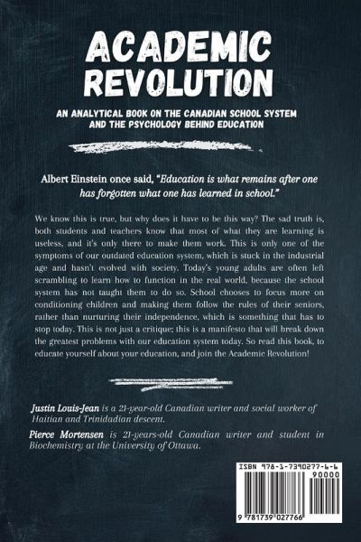 Academic Revolution is an analytical book on the Canadian school system and the psychology behind education. This book targets seven major problems in the education system and highlights solutions to each problem and is to be read by anyone who's involved in the education system since no matter if you are a student, teacher, parent or educator we all have a role to play to better the system for everyone.Problem 1: Old age values Problem 2: No Room for Autonomy Problem 3: Inauthentic Learning Problem 4: Can't find Your Passion Problem 5 We all Learn Differently Problem 6: Lecturing Problem 7: The Inevitable. The Unexpected. The Pandemic