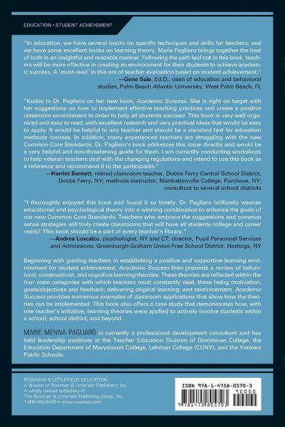 Beginning with guiding teachers in establishing a positive and supportive learning environment for student achievement, Academic Success then presents a review of behavioral, constructivist, and cognitive learning theories. These theories are reflected within the four main categories with which teachers must constantly deal, these being motivation; goals/objectives and feedback; delivering original learning; and reinforcement.