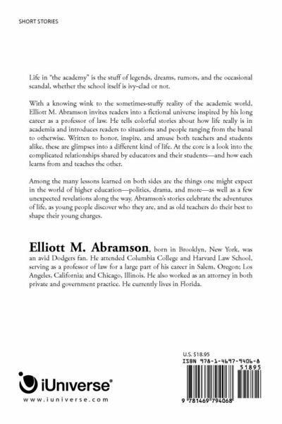 Life in "the academy" is the stuff of legends, dreams, rumors, and the occasional scandal, whether the school itself is ivy-clad or not. With a knowing wink to the sometimes-stuffy reality of the academic world, Elliott M. Abramson invites readers into a fictional universe inspired by his long career as a professor of law. He tells colorful stories about how life really is in academia and introduces readers to situations and people ranging from the banal to otherwise. Written to honor, inspire, and amuse both teachers and students alike, these are glimpses into a different kind of life. At the core is a look into the complicated relationships shared by educators and their students-and how each learns from and teaches the other. Among the many lessons learned on both sides are the things one might expect in the world of higher education-politics, drama, and more-as well as a few unexpected revelations along the way. Abramson's stories celebrate the adventures of life, as young people discover who they are, and as old teachers do their best to shape their young charges.