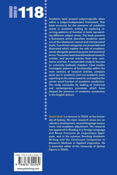Academic texts present subject-specific ideas within a subject-independent framework. This book accounts for the presence of academic words in academic writing by exploring recurring patterns of function in texts representing different subject areas. The book presents a framework which describes academic word use at the ideational, textual and interpersonal levels. Functional categories are presented and illustrated which explain the role of academic words alongside general purpose and technical terms. The author examines biomedical research articles, and journal articles from arts, commerce and law. A comparable analysis focuses on university textbook chapters. Case studies investigate patterns of functionality within the main sections of research articles, compare word use in academic and non-academic texts reporting on the same research, and explore the carrier word function of academic vocabulary. The study concludes by looking at historical and contemporary processes which have shaped the presence of academic vocabulary in the English lexicon.