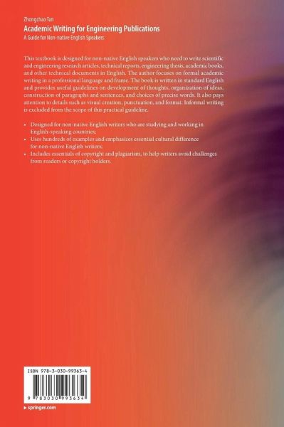 This textbook is designed for non-native English speakers who need to write scientific and engineering research articles, technical reports, engineering thesis, academic books, and other technical documents in English. The author focuses on formal academic writing in a professional language and frame. The book is written in standard English and provides useful guidelines on development of thoughts, organization of ideas, construction of paragraphs and sentences, and choices of precise words. It also pays attention to details such as visual creation, punctuation, and format. Informal writing is excluded from the scope of this practical guideline.