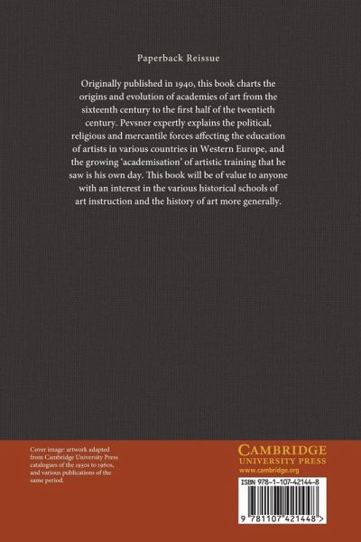 Originally published in 1940, this book charts the origins and evolution of academies of art from the sixteenth century to the first half of the twentieth century. Pevsner expertly explains the political, religious and mercantile forces affecting the education of artists in various countries in Western Europe.