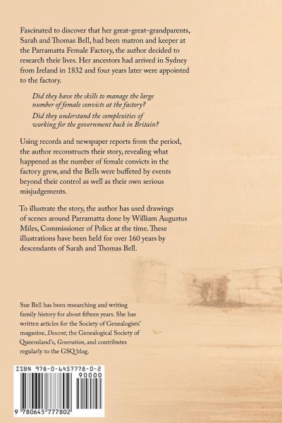 Fascinated to discover that her great-great-grandparents, Sarah and Thomas Bell, had been matron and keeper at the Parramatta Female Factory, the author decided to research their lives. Her ancestors had arrived in Sydney from Ireland in 1832 and four years later were appointed to the factor¿¿y. ¿¿¿Did they have the skills to manage the large number of female convicts at the factory? Did they understand the complexities of working for the government back in Britain? Using records and newspaper reports from the period, the author reconstructs their story, revealing what happened as the number of female convicts in the factory grew, and the Bells were buffeted by events beyond their control as well as their own serious misjudgements. To illustrate the story, the author has used drawings of scenes around Parramatta done by William Augustus Miles, Commissioner of Police at the time. These illustrations have been held for over 160 years by descendants of Sarah and Thomas Bell.