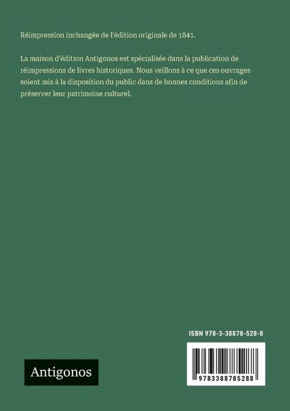 Réimpression inchangée de l'édition originale de 1841. La maison d'édition Antigonos est spécialisée dans la publication de réimpressions de livres historiques. Nous veillons à ce que ces ouvrages soient mis à la disposition du public dans de bonnes conditions afin de préserver leur patrimoine culturel.