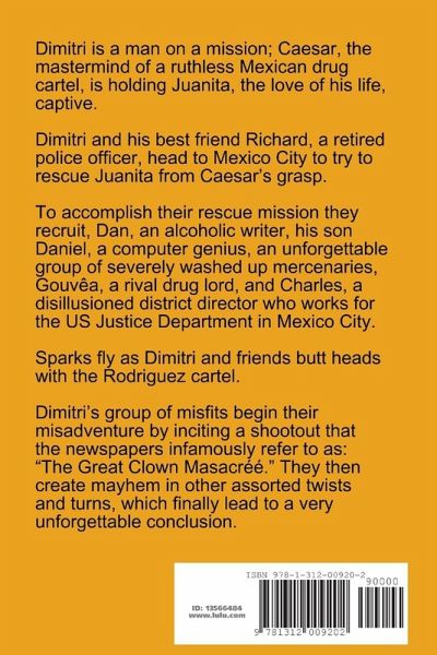 Dimitri is a man on a mission; Caesar, the mastermind of a ruthless Mexican drug cartel, is holding Juanita, the love of his life, captive. Dimitri and his best friend Richard, a retired police officer, head to Mexico City to try to rescue Juanita from Caesar's grasp. To accomplish their rescue mission they recruit, Dan, an alcoholic writer, his son Daniel, a computer genius, an unforgettable group of severely washed up mercenaries, Gouvêa, a rival drug lord, and Charles, a disillusioned district director who works for the US Justice Department in Mexico City. Sparks fly as Dimitri and friends butt heads with the Rodriguez cartel. Dimitri's group of misfits begin their misadventure by inciting a shootout that the newspapers infamously refer to as: "The Great Clown Masacréé." They then create mayhem in other assorted twists and turns, which finally lead to a very unforgettable conclusion.