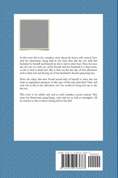 In this story this is the complete story about the house wife named Acca and her adventures being tied to her bed, first she has sex with her husband by herself and himself as she is tied to their bed. Then the next day she has sex with one of his friends and her husband in a threesome, as she is tied to their bed. She is then on the last day of this adventure tied to their bed and having six of her husband's friends gang bang her. Does she enjoy this new found sexual side of herself or does she not want to experience anymore of this type of life style after this? Time will only tell as this is her adventure into the world of being tied up as she has sex. This story is for adults only and as such contains, sexual content. This story has threesome, gang bangs, oral, anal sex as well as creampies. All by consent as the woman is being tied to her bed.