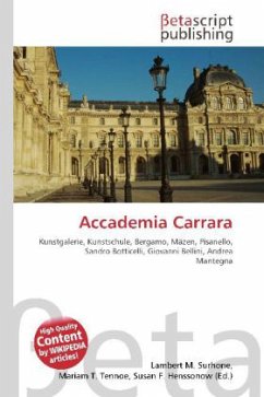 Please note that the content of this book primarily consists of articles available from Wikipedia or other free sources online. Die Accademia Carrara [kar rara] ist eine Kunstgalerie und eine Kunstschule in Bergamo, Italien. Der Ursprung der Kunstgalerie kann auf den Grafen Giacomo Carrara zurückgeführt werden, einem Mäzen und Sammler, der der Stadt Bergamo am Ende des 18. Jahrhunderts eine großzügige Erbschaft hinterließ. Nach dem Tod des Grafen im Jahre 1796 wurde seine Hinterlassenschaft bis 1958 durch einen Beauftragten verwaltet, danach übernahm die Stadt Bergamo die direkte Aufsicht. 1810 wurde ein neues Gebäude nach einem Entwurf des Architekten Simone Elia, einem Schüler von Leopoldo Pollack, in Neoklassischen Formen errichtet.